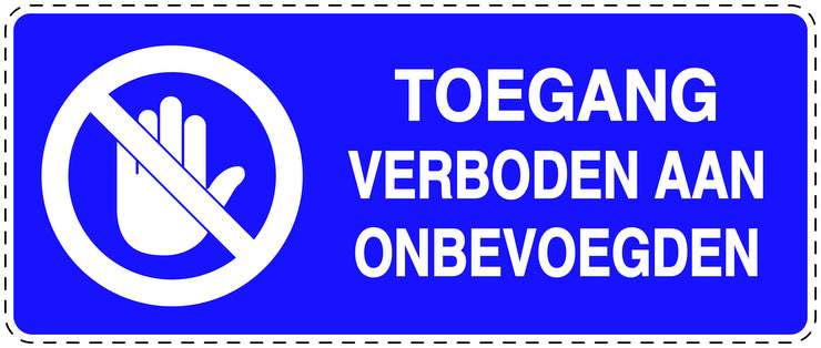 Toegang Verboden Stickers geven aan dat toegang verboden is en helpen onbevoegde toegang te voorkomen, wat zorgt voor veiligheid en beveiliging. Deze stickers zijn ideaal voor het bevorderen van veiligheid in risicovolle omgevingen en het waarborgen van de naleving van toegangsvoorschriften.Kleur: Blauw, rood, wit