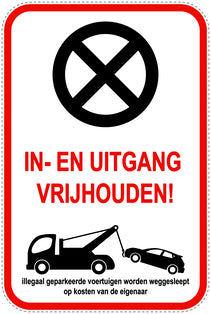 Geen parkeerborden “In-en uitgang vrijhouden!” (Niet parkeren) als sticker